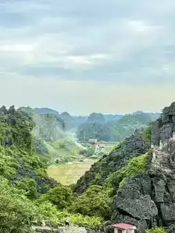 The weekend started at Múa Cave, known as Dragon Hill — and honestly, it felt like walking into a dream. The 500 steep stone steps wound their way up between tall cliffs, surrounded by green rice fields that stretched as far as I could see. By the time I reached the top, my legs were shaking, but I forgot all about it when I saw the view. Tam Coc’s river shimmered below, weaving between karst peaks like a silver ribbon. The giant dragon statue perched on the ridge looked down over it all, timeless and majestic. Up there, with the wind on my face, it felt like standing on top of Vietnam’s wild heart.