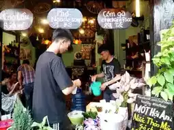 Atmosphere: MOT herbal tea shop is located in the heart of Hoi An Old Town. It is easy to notice. There is a queue in front of the shop. There is a small counter for take away. You can order and the staff will scoop it into a glass and give it to you. The price is not expensive at 18,000 VND. The main ingredients are lemon, lemongrass, herbs such as licorice, jasmine, chrysanthemum, lotus leaves, ginger, cinnamon and other ingredients. Decorated with lotus petals, the straw is a lotus stem.