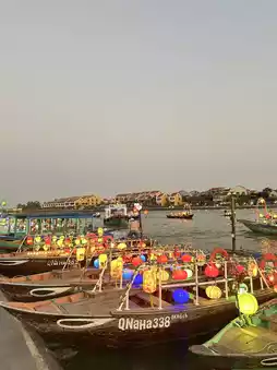 ✅ There are boats for tourists to try to ride on the Thu Bon River.
