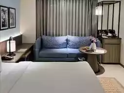 The deluxe king room offers a spacious 36-square-meter area, with high-quality toiletries and a well-stocked mini bar where all food, drinks, and alcohol are complimentary. The room also features a stunning Instagram-worthy bathtub. On weekdays, a double room with breakfast costs around 5,000 TWD.