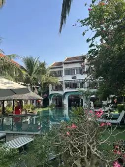 The rooms are spacious, the staff is friendly, and the breakfast is clean and well-prepared. You can enjoy swimming in the pool right in front of the breakfast area, making it a perfect spot to unwind and enjoy your Hoi An trip. ❤️
