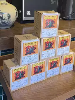 Gióng Cafe is a recommended spot in the ancient town of Hoi An. This cafe has multiple branches across Vietnam and is renowned for its coffee. They offer a wide variety of coffee beans and even serve drip coffee. For those who don't drink coffee, there are other menu options available. Today, we ordered an Iced Matcha Latte and Vietnam Coffee with Fresh Milk. Both were delicious and rich in flavor, though a bit too sweet for our taste.