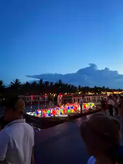 At night, there will be a boat trip to release lanterns, which is beautiful and impressive. There are also many shops, restaurants, clothes, souvenirs and various items for us to buy back.