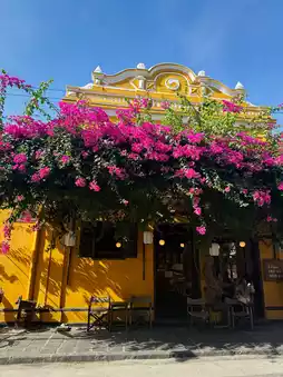 Hoi An Ancient Town, a world heritage site. The old buildings reflect the fusion of Chinese, Japanese and Vietnamese cultures. They have been well preserved and have become a tourist attraction full of beauty. The highlight of this city is that the town is in mustard yellow, contrasting with the beautiful wooden buildings.