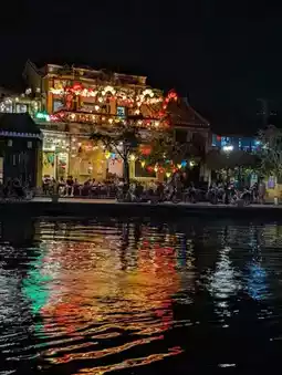 Along the river, cozy cafes and restaurants open up, where you can enjoy local delicacies like Cao Lau noodles or White Rose dumplings (Banh Bao Vac), accompanied by live music. 🍜🎷