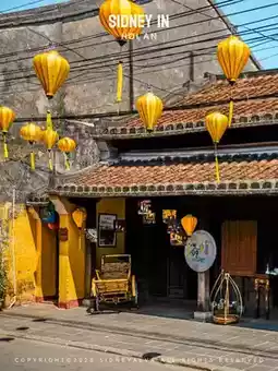 The sun shines on the yellow walls of the old house, which is the most classic picture of Hoi An.