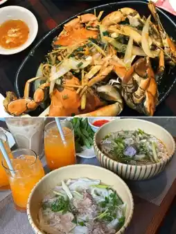 Dinner at Thuan Y (tall building by bridge) - tasty local food.