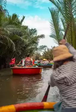 These round bamboo boats are actually a clever invention from the Vietnam War era! Back then, to avoid taxes, fishermen made their boats in the shape of a basket.