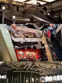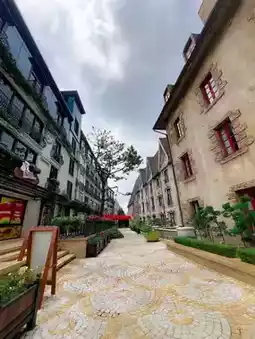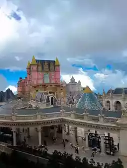 • Upstairs, there's a flower garden, a cafe, and a replica of a European village. 🏰 Stroll around and enjoy the moment.