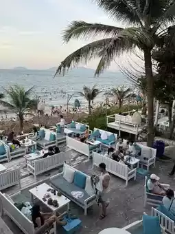 This is a highly recommended spot for travelers seeking "beach + sensibility + a relaxed atmosphere + a variety of menu options." The menu offers a wide variety of dishes, from traditional Vietnamese cuisine to fresh seafood barbecue, and Western-style pastas, burgers, and pizzas. Sharing a seafood boat is especially popular, with many praising the atmosphere and satisfaction! The white and blue interior, reminiscent of the Mediterranean, is impressive. With parasols, sunbeds, and beach loungers, it's not just a place to dine, but a great place to spend a whole day. #HoiAnRestaurants #HoiAnTravel
