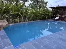 Despite its small size, it boasts a fairly large swimming pool,