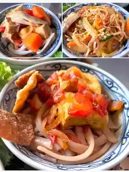 My Quang - Hand-cut noodles in a delicious broth topped with pork, shrimp, and quail egg.
