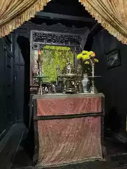 The house is designed in a long, narrow structure, with shops in front and residences in the back, convenient for merchants and travelers. The courtyard and halls are constructed of wood and brick. The roof features Chinese-style eaves, while the walls retain the traditional Vietnamese simplicity, with Japanese-style beams visible. The overall design is both practical and elegant, reflecting the prosperity and diversity of Hoi An as an international trading port.