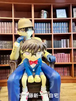 Conan's Bronze statue standing in front of the kitchen