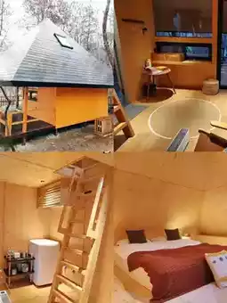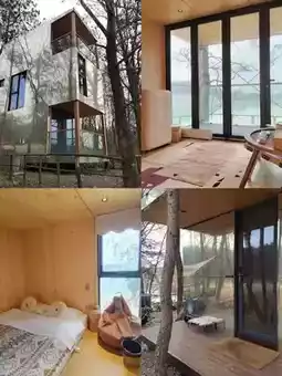 Highly recommend the “Fairy House”! Nordic-style triangular wooden cabin, open the door to your private lawn + bonfire area~ The round bed is super soft, air conditioning + fireplace are very thoughtful, plus Dyson hairdryer, portable speaker, and books to browse at will! At night, lie on the sofa watching the lake view, the sound of wind, insects, and distant bonfire blend together, so healing you’ll want to live here forever~