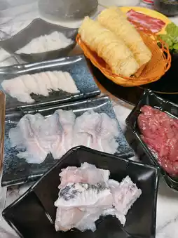 🐮There are several varieties of Angus beef in pink color. The fresh meat tastes rich and chewy. 🥩The white slices of beef breast are crispy and fragrant with butter. Other river seafood are equally fresh. 🐟Dragon pork belly and white eel slices are both good. The signature hand-beaten black truffle cuttlefish smoothie is rich in flavor and chewy. The seaweed rings are full of soup and worth a try😋