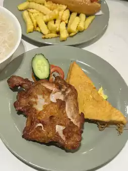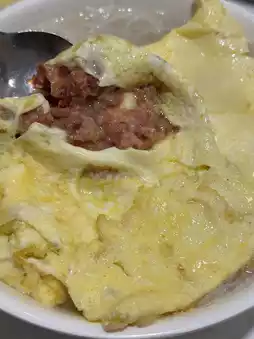 The rice noodles with shredded ginger beef, the beef is cooked just right, soft yet chewy ~ The salted beef omelette is full of salty flavor, the beef is plump in texture, and the egg aroma is overflowing.