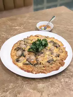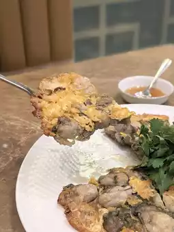 The oyster cake is very rich in ingredients. There are many big pieces of oysters