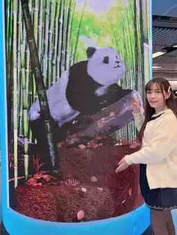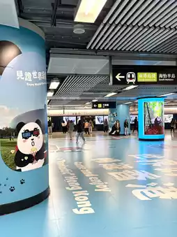 The 🐼six cute giant panda images will be stationed at the MTR "Super Transfer Station" Golden Mile Station to meet you in the waiting lobby; the LED cylinder in the lobby will also play the super cute 3D pandas.