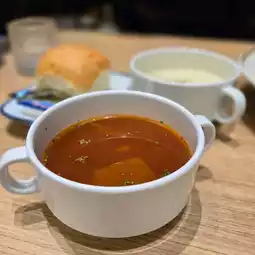 Lunch will come with soup, red and white to choose from, the sour red soup is quite refreshing. If it's an iron plate meal, it will also come with a meal bag.