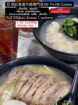 Place📍: Mr. Tin Hong Kong Cuisine It's like a beef noodle shop, delicious, clean, love it so much 😋‼️Closes late, can continue after Disney ……….….………………………………….….……… Place📍: Beef Station, a delicious Mala buffet restaurant, but there are many in Thailand‼️Make a reservation on Google before going (otherwise you'll have to wait a long time)……….….………………………………….….………Place📍: Cheung Hing Kee Shanghai Pan Fried Buns It's like Xiao Long Bao, but the dough is soft and crispy, delicious 😋‼️ 2 people order 6, more worth it, 4 is not enough to eat, too delicious……….….………………………………….….………Place📍: Yung Kee Roast Goose Restaurant It's like a roast pork and crispy pork shop in our country, there's goose‼️ Crispy pork and roast pork are delicious, poultry, be careful of the bones……….….………………………………….….………Place📍: World of Frozen Anna and Elsa's Steak House, delicious, sold as a set for 200++‼️If you want a cheap price, I recommend tomorrow land……….….………………………………….….………Place📍: Hashtag B, a famous bread shop Next to the blue one‼️You have to buy 3 pieces to get a box (normal eggs are delicious) If you have plans to go to Hong Kong, you have to follow me. I will come back to recommend amazing accommodations that are easy to travel to Ep2