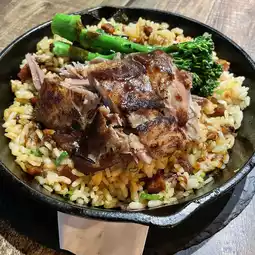 The duck leg has thin skin and chewy meat, with soft and tender fat that adds a salty and oily flavor. The oil seeps into the rice, making it fragrant and not dry, with a hint of lime aroma.