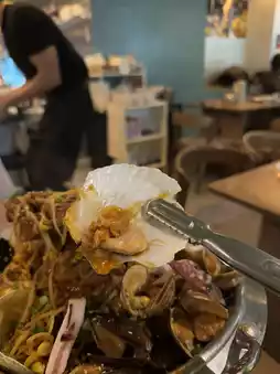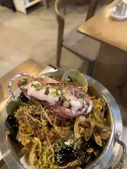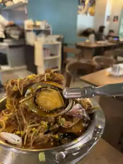 Stewed ribs with seafood, a large pot of rich stew is added with a variety of rich seafood, including scallops, bacon, mussels, mussels and squid🦑, with ribs as the main character. The soup is spicy and rich, with layers of spiciness but not overly spicy, and is infused with the freshness of seafood.