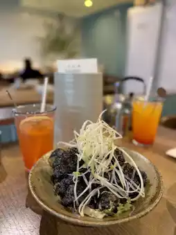 Fried chicken is a classic in Korean cuisine, and the black sesame taco here comes with a unique twist. The flavor has a slight sesame aroma, the chicken is tender, crispy on the outside and soft on the inside.