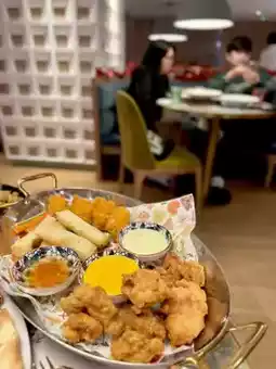 The fried food series ordered fried chicken🍗 Fried chicken with cheese sauce. The fried chicken pieces are crispy on the outside and tender and juicy on the inside. There are also spring rolls and fried oysters, which are very crispy. The fried oysters were very full.