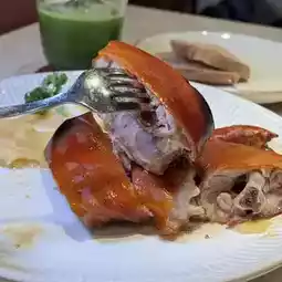 Roast suckling pig skin crispy tender meat, oil in the roasting process fully play, more the suckling pig rich meat juice locked, suckling pig skin and meat in the middle of a layer of fat full of oil fragrance, soft and tender Juicy, with lemon juice and apple puree, can neutralize the greasiness, very delicious