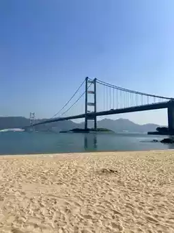 Enjoy the long flat beach and the stunning views of Tsing Ma Bridge and Ting Kau Bridge