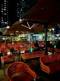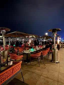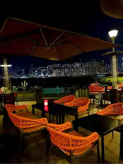 Outdoor Victoria Harbor sea view 🌊 Facing the Whampoa Promenade, the Victoria Harbor view is wide and chill ~ The restaurant interior is also full of atmosphere and quite atmospheric, playing light music dining 🍽 Good Vibes🖤 strong relax, coincides with the festival and many celebrations, very atmospheric!