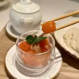 After peeling the cherry tomatoes, add plum juice and refrigerate to marinate; the plum flavor is prominent and it removes oil and greasiness, which is very appetizing.