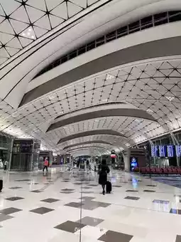#HongKongTravel First time in Hong Kong, let me review the airport first. I like it here. It looks clean, new and systematic. From the moment we got off the plane, there was a walkway with few people. We took the escalator down to take a small train to the gate where we had to go through security checkpoints and claim our luggage. When we walked out of the airport, there was a large TV with Santa Claus to greet us. It was so cute.