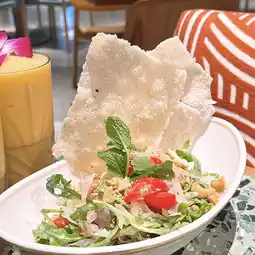 The ingredients of the whole salad include raw pickled tuna, coconut oil, lime, tomato, green apple, grapefruit, rocket, mint leaves, etc., using a variety of ingredients, the taste is with natural fruit acid, fresh and appetizing