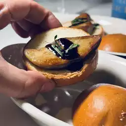 A surprise, the Foie Gras Small Burger, fried crispy goose liver with black vinegar sauce and fluffy buttered bread, super delicious