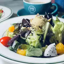 The seasonal salad uses fresh salad vegetables with fresh dragon fruit, orange, cherry tomatoes and chickpea flesh for a fresh flavor that opens up your taste buds instantly