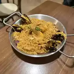 Thai Spanish Seafood Rice! The stewed rice has a Thai spice flavor, the lemongrass flavor is very prominent, the sour and spicy taste, and not too spicy, very appetizing; with mussels, shrimp, squid and other seafood, very satisfying!