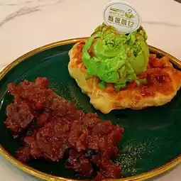 The amount of red beans is amazing, you don't have to worry about eating the last bite of the waffle without sauce.