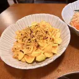 $148 Salted Egg Yolk Cream Sauce Prawn Balls and Cat's Ear Pasta, the prawns are big and chewy, and the cat's ear pasta is thick and chewy. The cream with salted egg yolk adds sparkle.