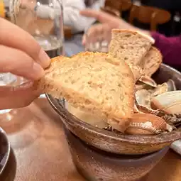 $98 Boiled clams in white wine, comes with bread! What a big bag, delicious food