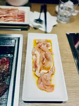 We ordered the short ribs and shank set🥩 (100g $118) and the three-piece set (pork belly, pork neck, chicken thigh) (200g $88), and also added a single beef tongue (100g $75). The set also includes rice, miso soup, and kimchi or salad.