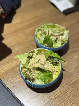 Salad vegetables: Served with sesame dressing fresh salad vegetables, fresh and crisp.