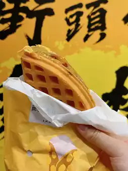 Adding whole piece of seaweed is very crispy. Each waffle is fluffy🥚 The bun has a filling of minced meat. It's full of ingredients😍 The taste is salty and sweet. The heavy egg flavor can't help but eat one after another