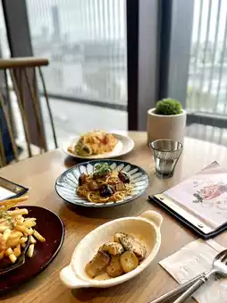 The Japanese-style Cafe☕️ is dominated by light wood colors. Its spiral staircases, trees and other decorations are full of fashion. This time I chose to sit by the window. The whole meal was accompanied by the sea view. The Japanese and Western food was exquisite and generous, and the atmosphere was quite comfortable.