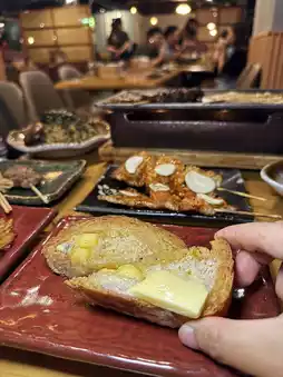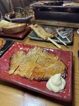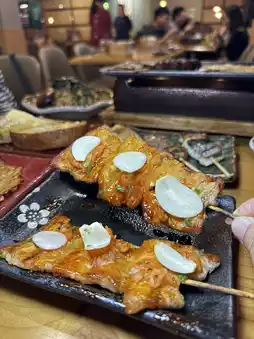 A palm-sized grilled chicken skin is very attractive just by looking at it. The chicken skin is grilled until golden brown and super crispy in the mouth.