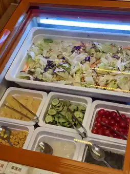 The buffet area provides salads, hot pot ingredients including meatballs and vegetables, big golden shrimps, very tasty Japanese curry beef brisket, miso soup, bottled drinks, soda, hot drinks, fruits, desserts and Japanese popsicles. There are so many food options that it is impossible to try them all in one go.