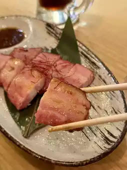 Smoked Kagoshima pork loin, try the original flavor, then dip it in the sour sauce and enjoy a completely different taste.
