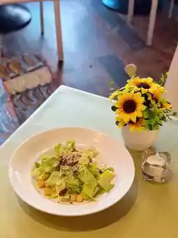 The fresh green Caesar salad, accompanied by a thick salad dressing, is sprinkled with salty and fragrant Parmesan cheese, the crispy bacon adds oily aroma, and the breadcrumbs add taste.