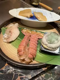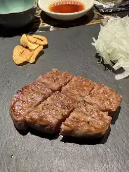 The chef helped me arrange five percent cooked, which I found very mushy, very good cooking, and different sauces and Wasabi to go with this wagyu beef, great satisfaction.